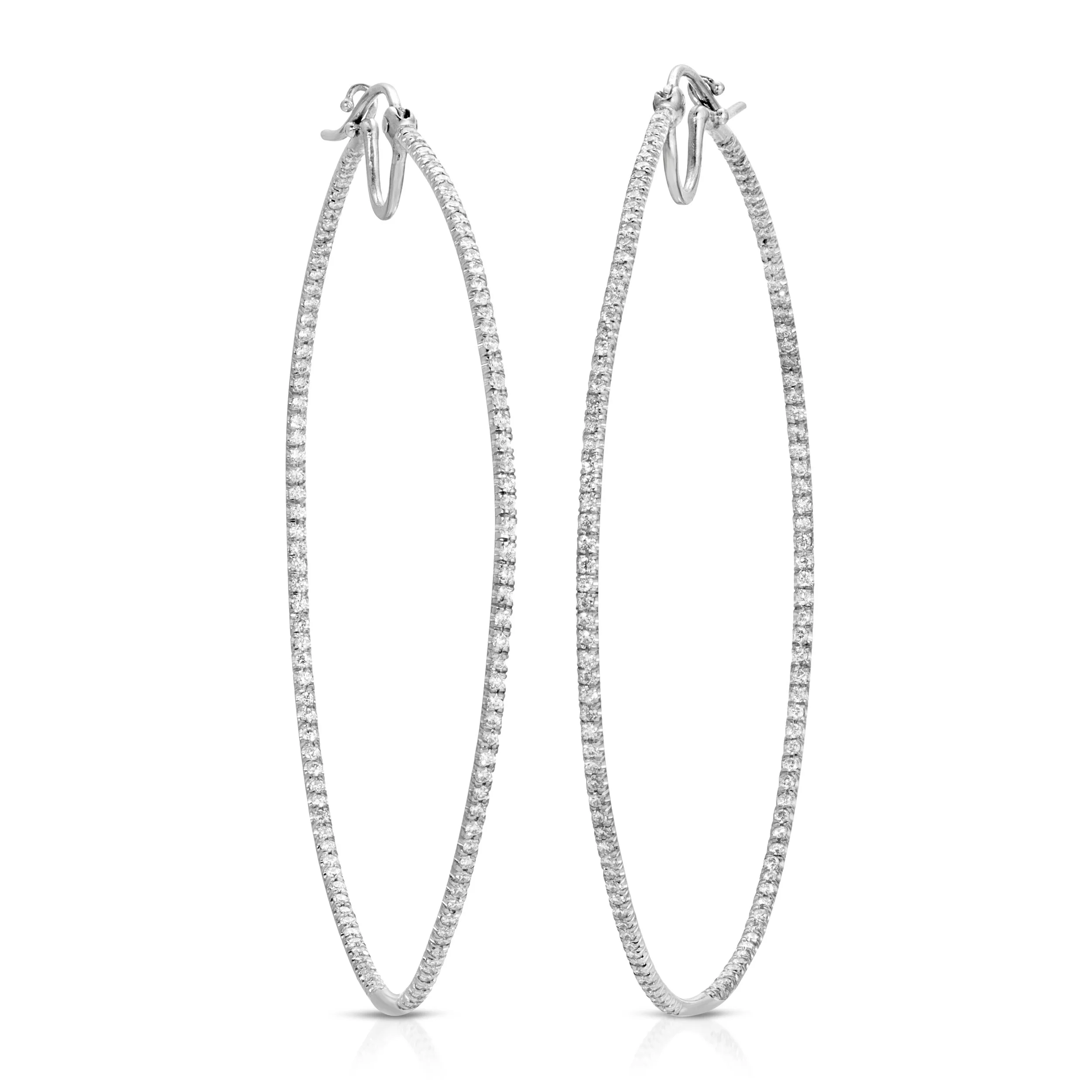 filament-fine diamond platinum hoops, pavéd inside and out with best quality brilliants, creating just the thinnest streak of brilliance