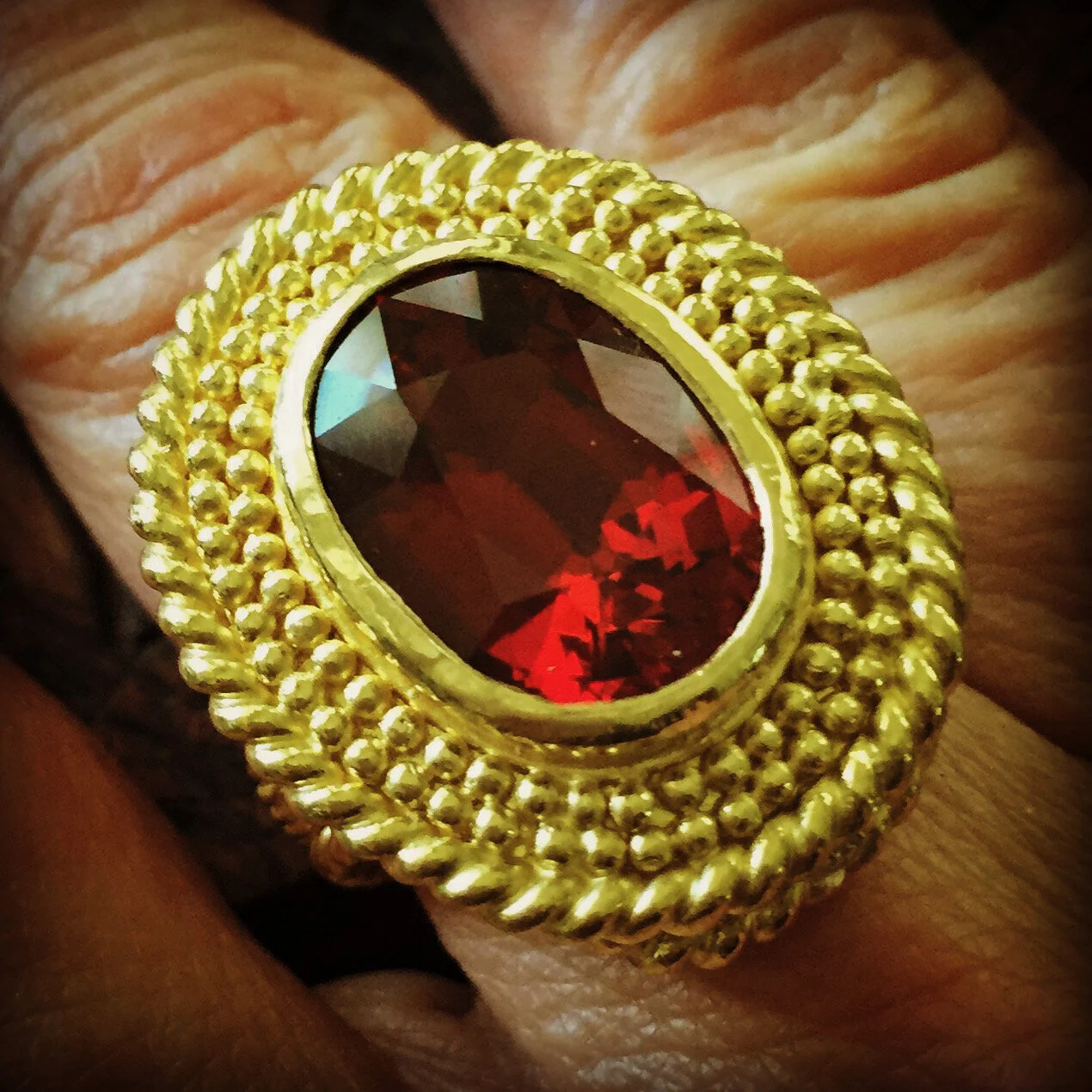 garnet ring with a granulated gold mountinga custom ring for a special lady on a special occasion. not available fabrication detail View fullsize