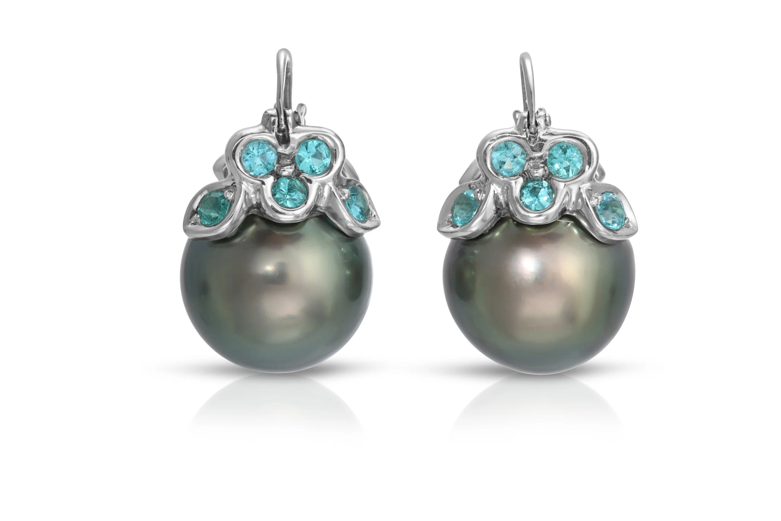 gumball sized tahitians ornamented with paraiba tourmaline flora